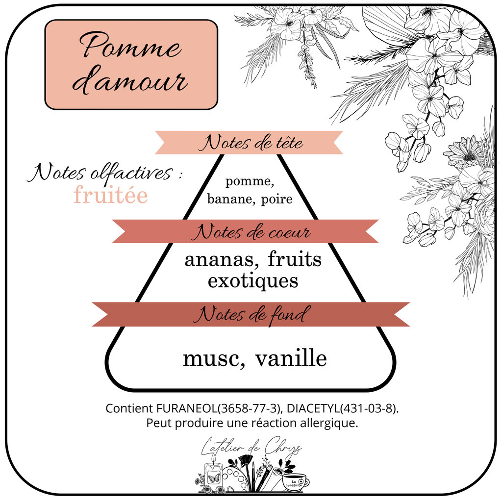 Retrouvez les notes olfactives et la liste des allergènes contenus dans chaque parfum dans la rubrique fragrances qui se trouve ici et les conseils d'utilisation d'une chantilly parfumée ici